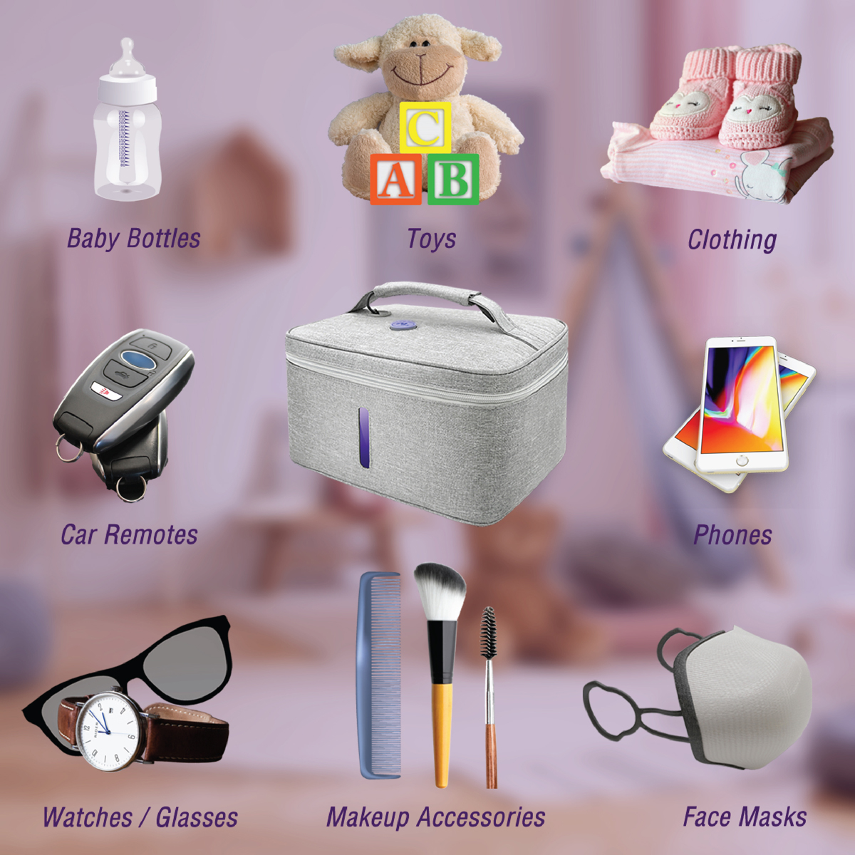 Your personal items carry all the unhealthy germs, bacteria and viruses you enounter on a daily basis. Clean them quickly and easily with UVC light in this compact, efficient UV Sanitizer Bag. This sterilization bag is extremely convenient, portable and highly effective with a disinfection rate of up to 99.99%. Simply place your cell phone, keys, baby bottles, or just about any small item in the bag, zip it closed and push the button. Your items are sanitized in just 5 minutes! You may use it with confidence because it is safe and radiation-free.