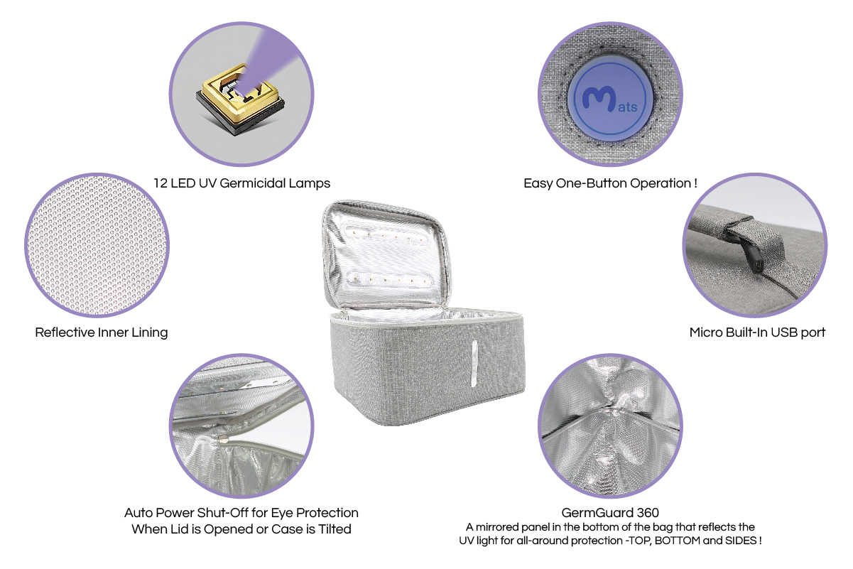 The Omats Sterilizing Bag uses the latest generation of UVC LED technology. The corrosion-resistant element has a high thermal conductivity aluminum nitride frame, airtight design, and gold plating process on the surface. One UVC LED lamp can last up to 10,000 hours.