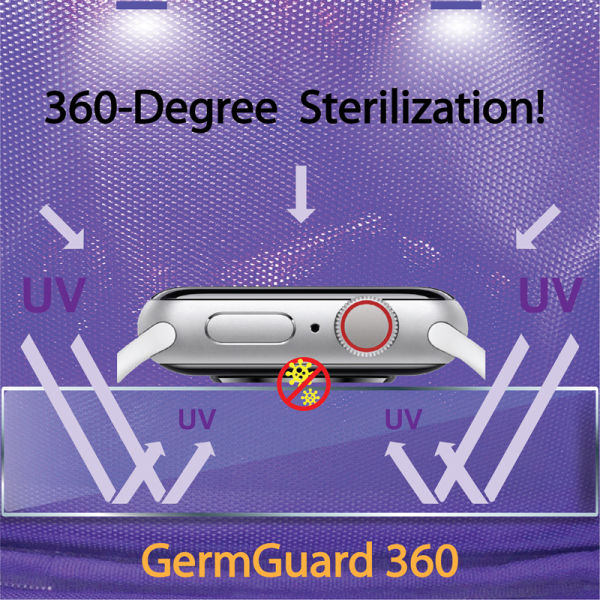 GermGuard 360 reflects the UV light to eliminate germs and bacteria on the bottom of items, not just on the top as with most sanitizer bags. It is 360-Degree Sterilization!